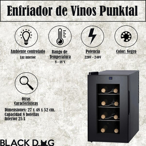 Enfriador De Vinos Punktal 8 Botellas 23 Litros Pk-ev81 Amv