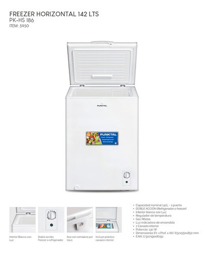 Freezer Horizontal Punktal Pk-hs186 142 Lt Eficiencia B Color Blanco