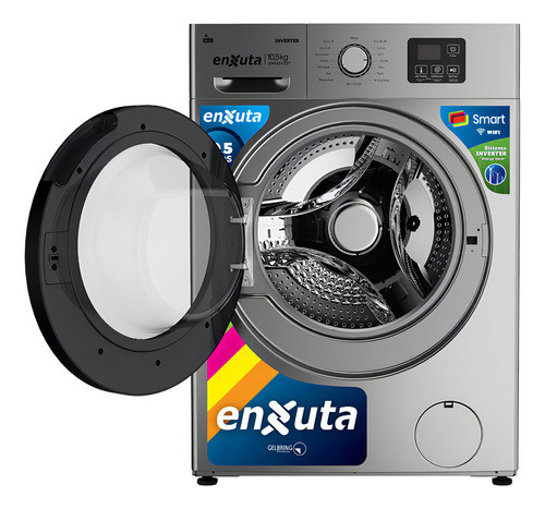 Lavarropas Inverter Smart 10,5 Kg Enxuta Lenxs01050t Carga Frontal Color Plateado