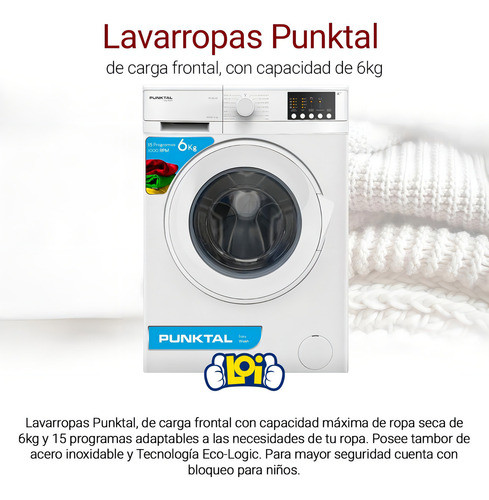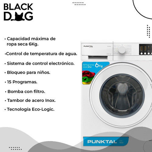 Lavarropas Punktal Eco-logic Frontal 6kg Panel Digital Color Blanco