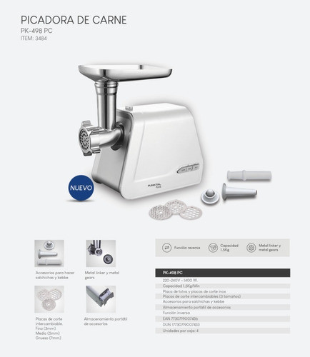 Picadora De Carne Punktal Pk-498pc Accesorios Para Embutidos