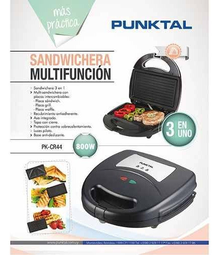 Sandwichera Doble Punktal Pk-cr44 3en1 800w Color Negro
